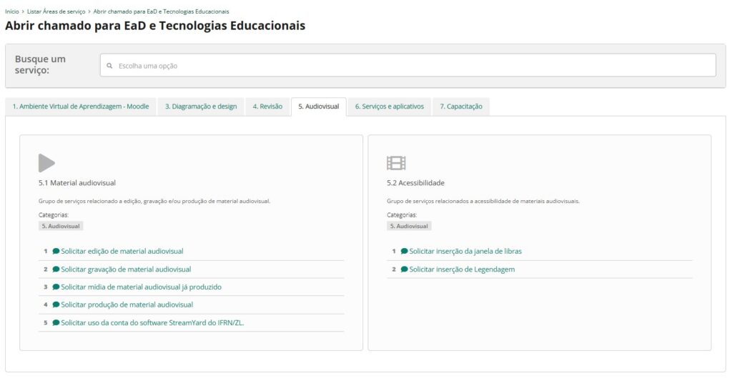 4. Selecione a categoria de serviço “5. Audiovisual“.