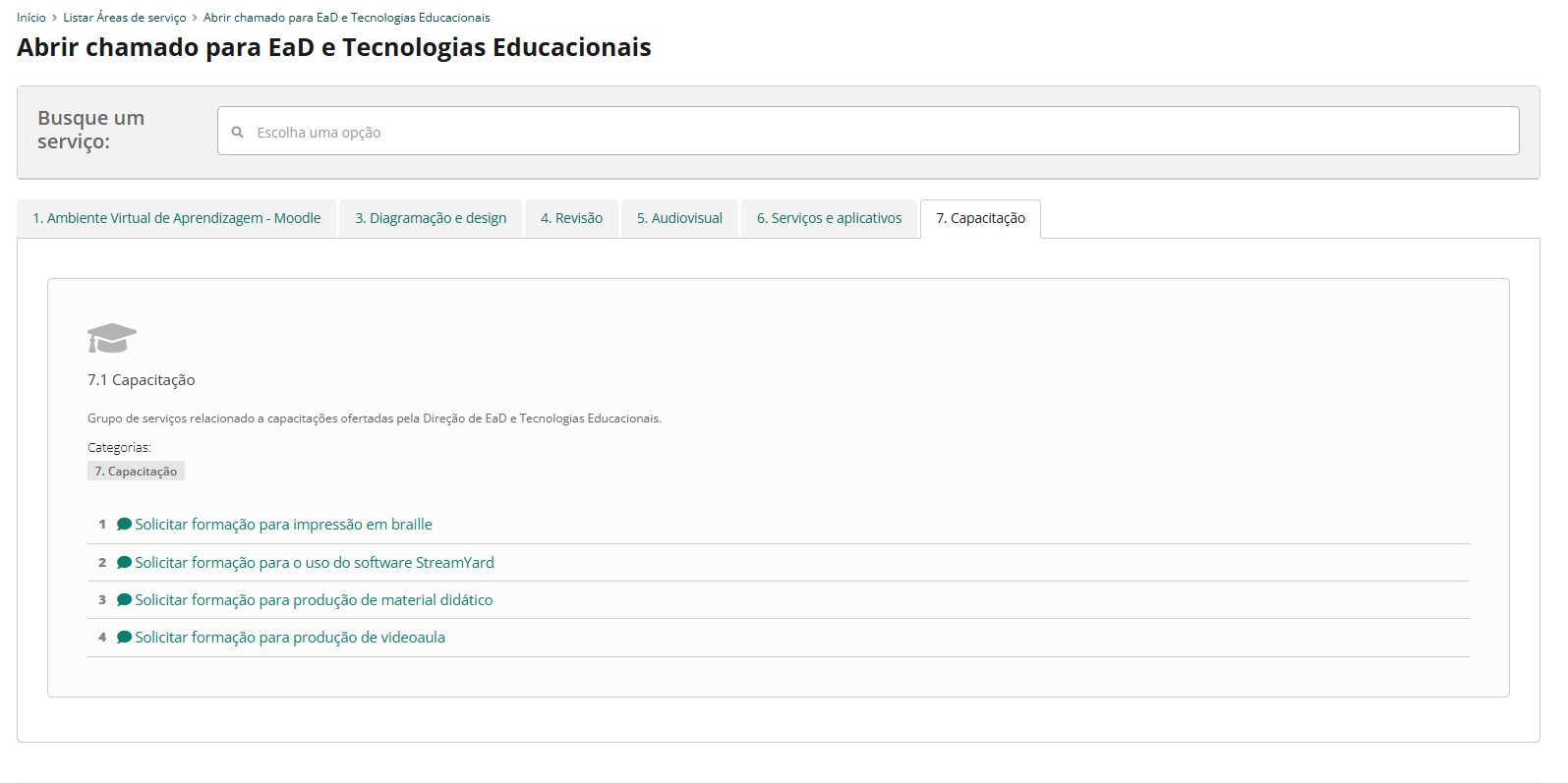 4. Selecione a categoria de serviço “7. Capacitação“;
