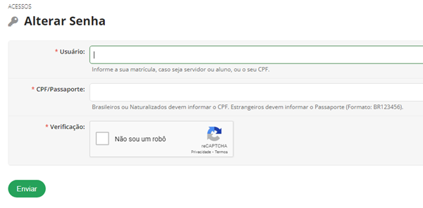 Then, click on “Esqueceu ou deseja alterar sua senha” which in English would be “You have forgotten your password or wish to change it?”.